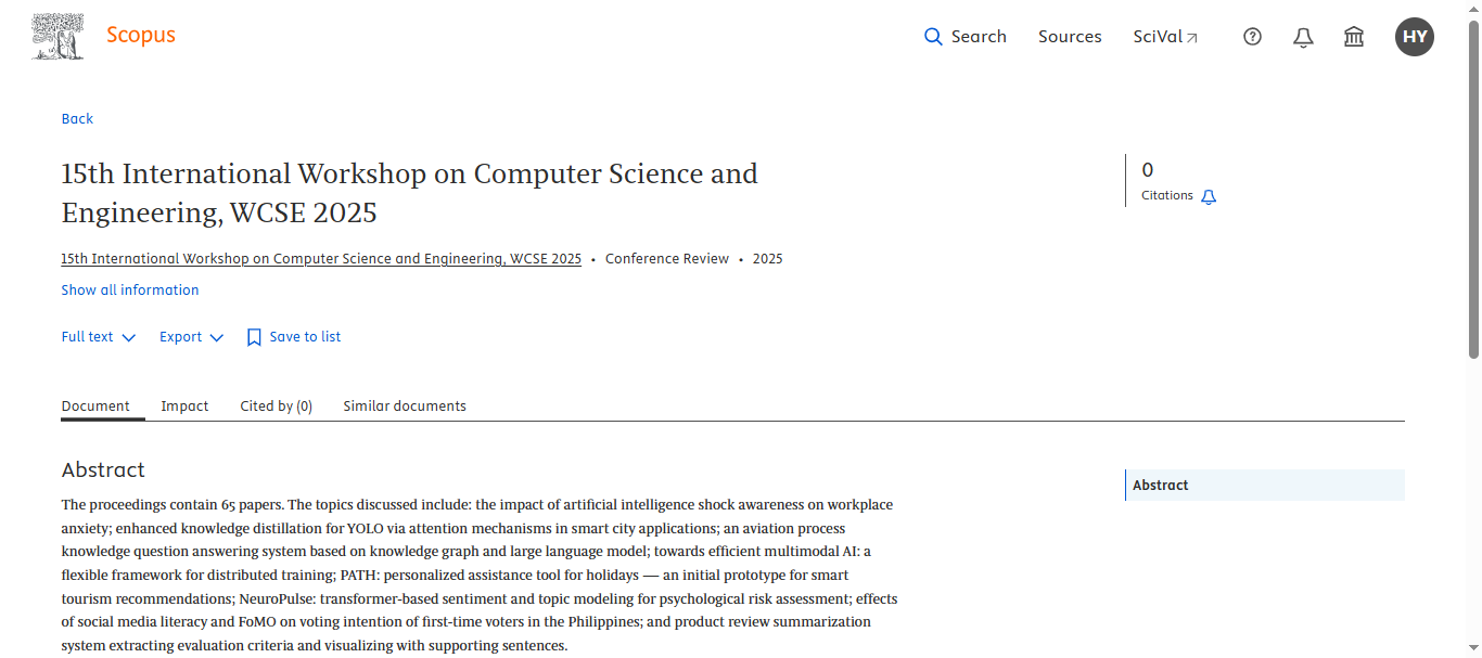 Submitted papers will be peer-reviewed by the technical program committees. Accepted and presented papers will be published in the WCSE proceedings, and submitted for EI Compendex, Scopus indexing.
